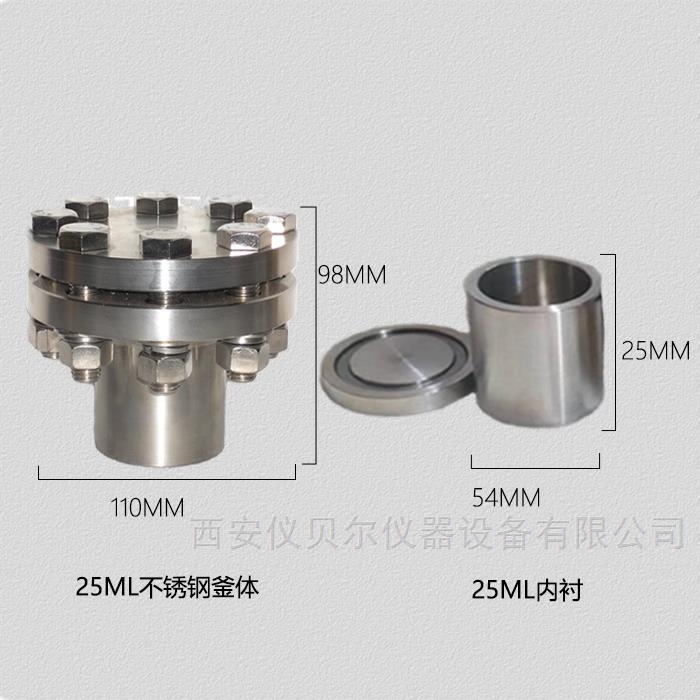 500度法兰式水热合成反应釜高温高压消解罐 25ml